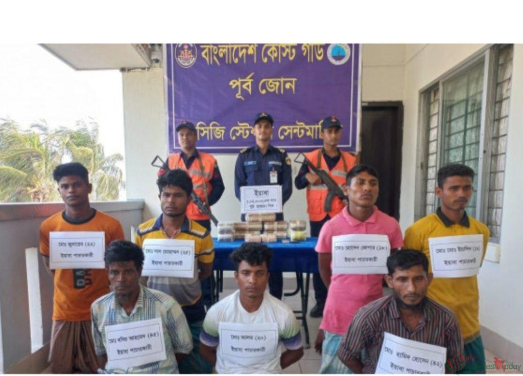 আজ (২৫শে এপ্রিল) সকাল ১১ টায় টেকনাফ উপজেলার সেন্টমার্টিন দ্বীপের অদূরবর্তী পূর্ব সাগরে এ অভিযান তাদের আটক করা হয়। আটকদের মধ্যে ৫ জন মিয়ানমারের বাস্তুচ্যুত রোহিঙ্গা নাগরিক এবং দুইজন বাংলাদেশি স্থানীয় বাসিন্দা।কোস্টগার্ডের সেন্টমার্টিন স্টেশনের কমান্ডার লেফটেন্যান্ট রাইয়ান আলম জানান, সোমবার সকাল ১১ টায় টেকনাফ উপজেলার সেন্টমার্টিন দ্বীপের অদূরবর্তী পূর্ব সাগরে এ অভিযান চালানো হয়।