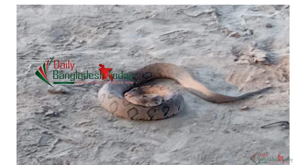 কুষ্টিয়া প্রতিনিধি:- কুষ্টিয়া গড়াই নদীর তীরবর্তী এলাকা মঙ্গলবাড়ীয়া ভাটাপাড়া এলাকা থেকে এই সাপটিকে আটক করে স্থানীয়রা। আজ শনিবার বিকেল তিনটার দিকে নদীর তীর থেকে লোকালয়ে উঠে আসে সাপটি। পরে বন বিভাগে খবর দিলে কর্মকর্তারা এসে রাসেল ভাইপারটিকে উদ্ধার করে নিরাপদ স্থানে অবমুক্ত করেন