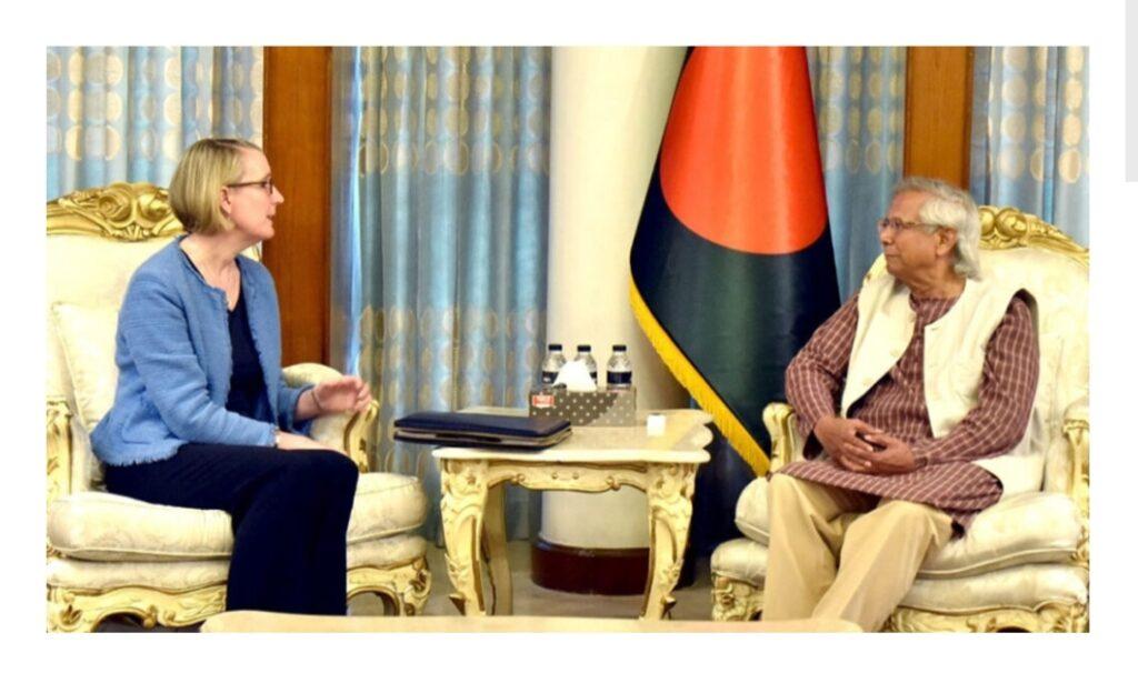 আজ বুধবার (২১ আগস্ট) রাষ্ট্রীয় অতিথি ভবন যমুনায় ব্রিটিশ হাইকমিশনার সারাহ কুকের সাথে সৌজন্য সাক্ষাতে এ কথা বলেন তিনি। প্রধান উপদেষ্টার প্রেস উইং বিষয়টি নিশ্চিত করেছে।এ সময় ব্রিটিশ হাইকমিশনার তার দেশের সরকারের পক্ষ থেকে ড. মুহাম্মদ ইউনূসকে স্বাগত জানান। বলেন, যুক্তরাজ্য বাংলাদেশকে সহযোগিতা করতে প্রস্তুত। এ সময় তিনি রোহিঙ্গাদের সহযোগিতার বিষয়েও আশ্বাস দেন।