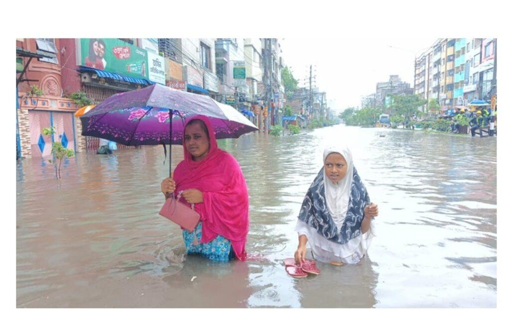 অনলাইন ডেস্ক:- বঙ্গোপসাগরে সৃষ্ট নিম্নচাপের কারণে প্রবল বর্ষণে তলিয়ে গেছে যশোরের নিম্নাঞ্চল। রোববার (১৫ সেপ্টেম্বর) সন্ধ্যা পর্যন্ত ২৪ ঘণ্টায় যশোরে ১৩৩ মিলিমিটার বৃষ্টিপাত রেকর্ড করা হয়েছে। টানা এই বর্ষণে সীমাহীন দুর্ভোগে পড়েছেন জেলাবাসী। টানা ভারী বর্ষণ এবং শহরের পানি নিষ্কাশন ব্যবস্থা উন্নত না হওয়ায় ড্রেন উপচে রাস্তাঘাট তলিয়ে নোংরা পানি প্রবেশ করেছে অসংখ্য বাড়িঘর, ব্যবসাপ্রতিষ্ঠানে।