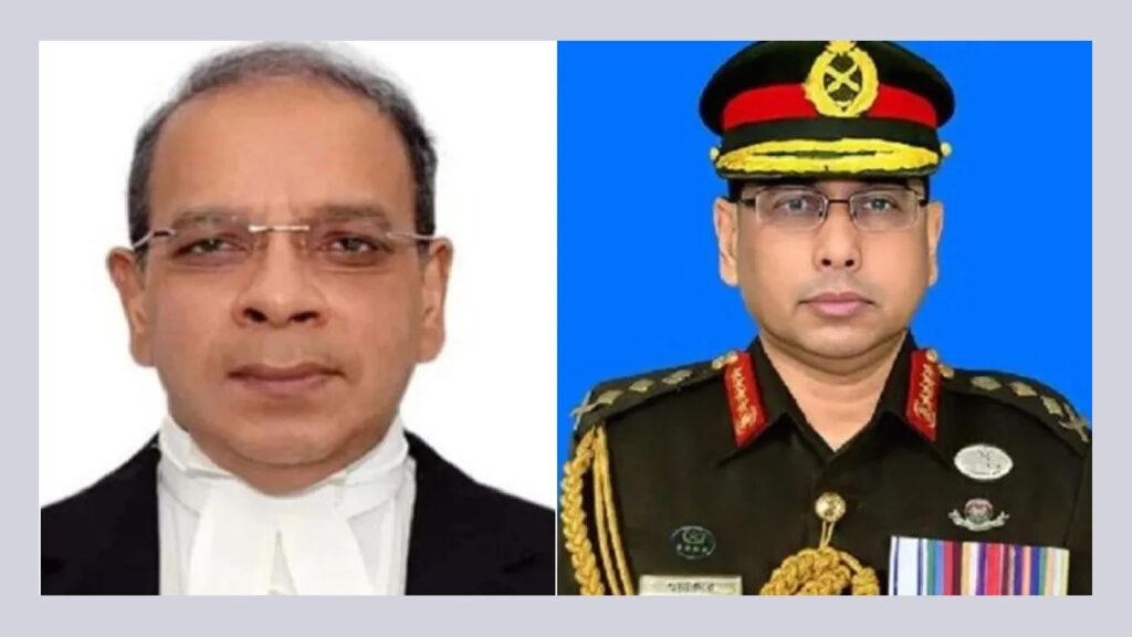 মানিক মিয়া স্টাফ রিপোর্টার:- বাংলাদেশের প্রধান বিচারপতি ড. সৈয়দ রেফাত আহমেদের সঙ্গে বৈঠকে করেছেন সেনাবাহিনী প্রধান জেনারেল ওয়াকার-উজ-জামান।