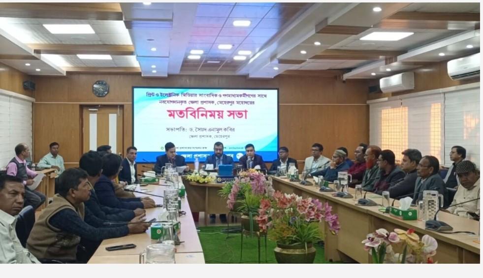 মেহেরপুর জেলা প্রতিনিধি:- মেহেরপুরের নবাগত জেলা প্রশাসক ড. সৈয়দ এনামুল কবিরের সঙ্গে জেলার সাংবাদিকদের মতবিনিময় সভা অনুষ্ঠিত হয়েছে।
