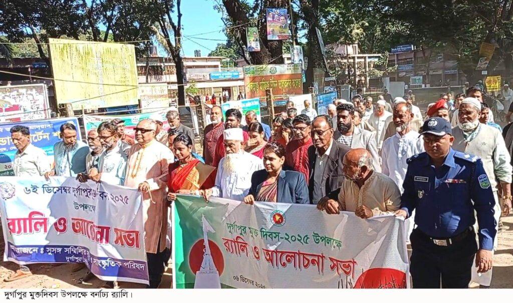 দুর্গাপুর(নেত্রকোণা)প্রতিনিধি:- ৬ ডিসেম্বর দুর্গাপুর মুক্ত দিবস ১৯৭১ সনের এই দিনে বাংলার দামাল ছেলেদের এক রক্তক্ষয়ী লড়াইয়ের মধ্য দিয়ে নেত্রকোণার সীমান্তবর্তী দুর্গাপুর উপজেলাকে মুক্ত করেছিলেন।