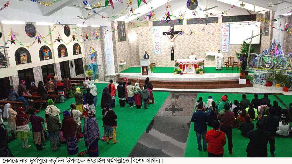 দুর্গাপুর (নেত্রকোনা) প্রতিনিধি:-‘‘স্বর্গ থেকে এসো হে প্রভু – এসো তুমি সকলের হৃদয় মাঝে’’ এই প্রতিপাদ্যে নেত্রকোনার দুর্গাপুরে আদিবাসী অধুুষিত এলাকা গুলোতে খ্রীষ্ট সম্প্রদায়ের সবচেয়ে বড় ধর্মীয় উৎসব ‘‘শুভ বড়দিন’’ পালিত হয়েছে।