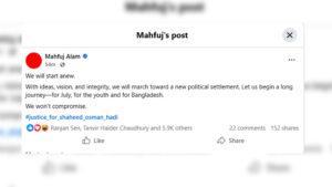 পেয়েছেন নির্বাচন পরিচালনা কমিটি প্রধানের গুরুদায়িত্ব। এমন প্রেক্ষাপটে মাহফুজ আলম ফেসবুকে এক পোস্ট করেছেন। যেখানে তিনি লিখেছেন, ‘আমরা নতুন করে শুরু করব।