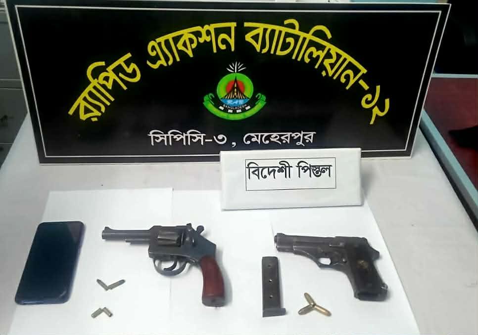এ সময় তাদের হেফাজত থেকে ১টি বিদেশি পিস্তল (Made in USA), ১টি রিভলবার (Made in Afghanistan) এবং ৫ রাউন্ড গুলি উদ্ধার করা হয়।