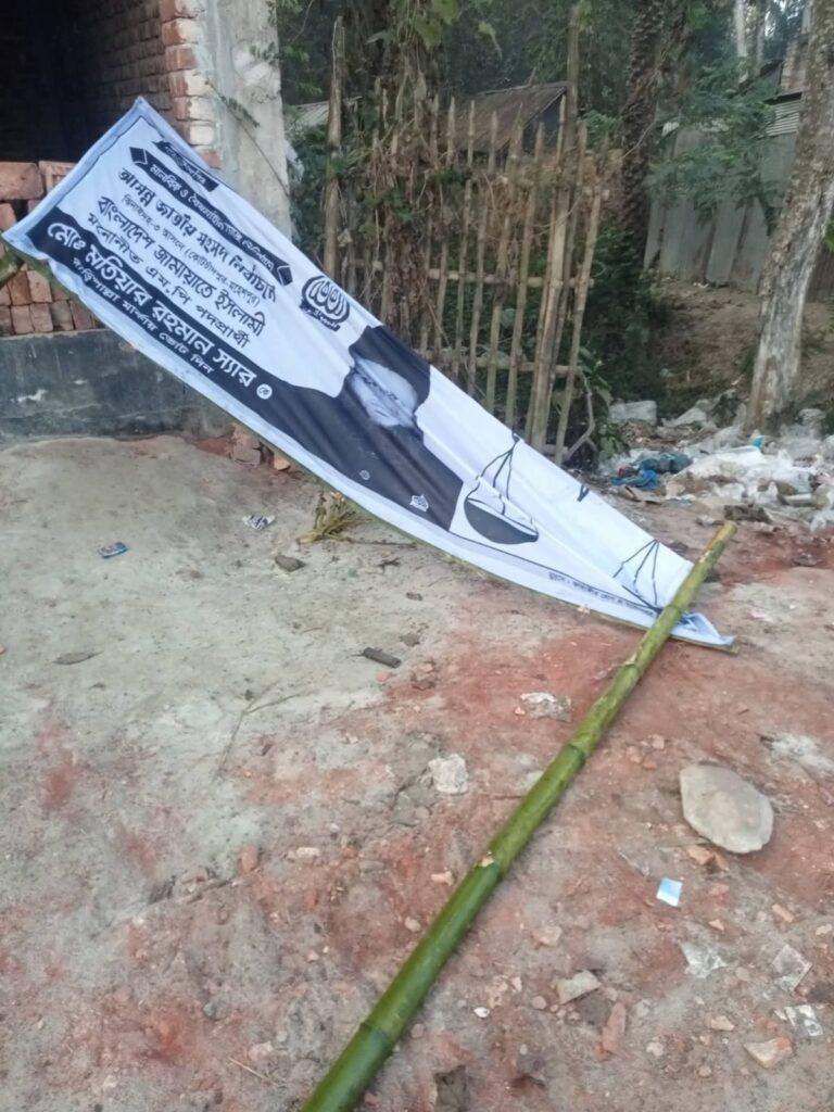 কিন্তু ওই ব্যানার ভাঙচুর করে ফেলে দিলো কারা তা নিয়ে উঠেছে প্রশ্ন।
