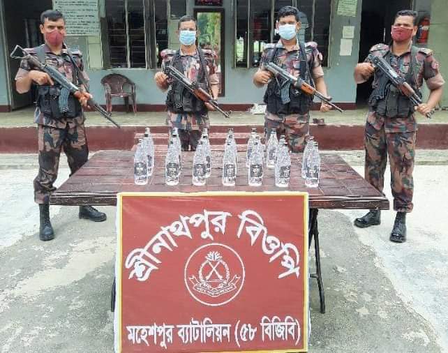 মহেশপুর ব্যাটালিয়ন (৫৮ বিজিবি) এর অধিনস্ত মেদিনীপুর বিওপির হাবিলদার মােঃ ওবায়দুল্লাহ এর নেতৃত্বে ০৩ সদস্য বিশিষ্ট টহল দল নিজস্ব গােয়েন্দা তথ্যের ভিত্তিতে সীমান্তের শূন্য লাইন হতে আনুমানিক ৩০০ গজ বাংলাদেশের অভ্যন্তরে চুয়াডাংগা জেলার জীবননগর উপজেলার মেদিনীপুর গ্রামের আম বাগানের মধ্যে হতে মাদক বিরােধীঅভিযান পরিচালনা করে মালিকবিহীন ৩৭ বােতল ভারতীয় মদ আটক করে। মহেশপুর ব্যাটালিয়ন (৫৮ বিজিবি) এর অধিনস্ত শ্যামকুড় বিওপির নায়েব সুবেদার মােঃ সিরাজুল ইসলাম এর নেতৃত্বে ০৭ সদস্য বিশিষ্ট টহল দল নিজস্ব গােয়েন্দা তথ্যের ভিত্তিতে সীমান্তের শূন্য লাইন হতে আনুমানিক ১.৫ কিঃ মিঃ বাংলাদেশের অভ্যন্তরে ঝিনাইদহ জেলার মহেশপুর উপজেলার শ্যামকুড় নলবিলপাড়া মাঠের মধ্যে হতে মাদক বিরােধী অভিযান পরিচালনা করে মালিকবিহীন ৫৪ টি ইয়াবা ট্যাবলেট এবং ৪৬ পুরিয়া গাজা আটক করে। মহেশপুর ব্যাটালিয়ন (৫৮ বিজিবি) এর অধিনস্ত নিমতলা বিওপির হাবিলদার শেথ তৈয়ব আলী এর নেতৃত্বে ৫ সদস্য বিশিষ্ট টহল দল নিজস্ব গােয়েন্দা তথ্যের ভিত্তিতে সীমান্তের শূন্য লাইন হতে আনুমানিক ৩০ গজ বাংলাদেশের অভ্যন্তরে চুয়াডাংগা জেলার দর্শনা থানার হালদারপাড়া গ্রামের সেগুন বাগানের মধ্যে হতে মাদক বিরােধী অভিযান পরিচালনা করে মালিকবিহীন ৩৭ বােতল ভারতীয় মদ আটক করে।