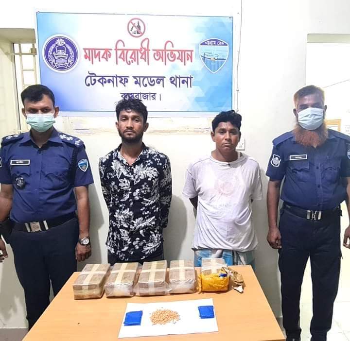 আসামী ০১। হাবিবউল্লাহ (৩৮), পিতা-মৃত সোলতান, সাং- ছোট হাবিবপাড়া, ০২। মোঃ আব্দুল গনি (৪১), পিতা- মৃত সৈদুল আহম্মেদ, সাং- মৌলভী পাড়া (০৮ নং ওয়ার্ড), উভয় থানা- টেকনাফ, জেলা- কক্সবাজারদ্বয়ের হেফাজত হতে ৫০,০০০ (পঞ্চাশ হাজার) পিস ইয়াবা (মাদক)