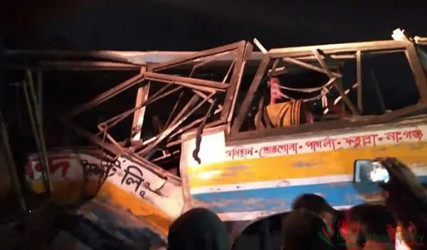 আনন্দ পরিবহনের বাসটি লেবেল ক্রসিংয়ের ওপর দাঁড়িয়ে থাকলে দ্রুতগতিতে ট্রেনটি বাসটিকে ধাক্কা দেয়। এতে বাসটি দুমড়েমুচড়ে যায়। বাসের ভেতর থেকে দুজনের লাশ উদ্ধার করা হয়েছে। পাঁচজনকে গুরুতর অবস্থায় হাসপাতালে পাঠানো হয়েছে।তাৎক্ষণিভাবে নিহতদের নাম-পরিচয় জানা যায়নি।